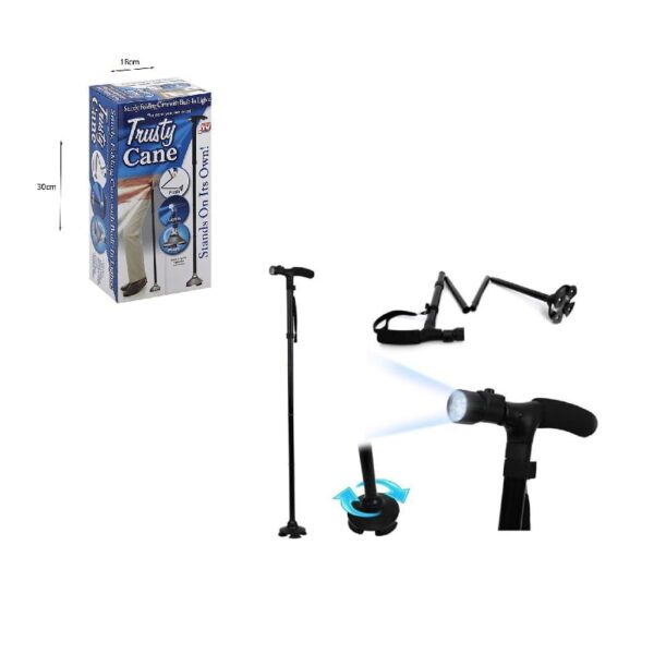 Πτυσσόμενο Μπαστούνι με Περιστρεφόμενο Πέλμα, Φακό LED & Ρύθμιση Ύψους – Trusty Cane