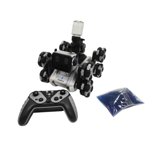 Διαδραστικό ρομπότ σκύλος με τηλεχειριστήριο και λειτουργία εκτόξευσης νερομπαλών – ο απόλυτος συνδυασμός παιχνιδιού, δράσης και τεχνολογίας! Διαθέτει τροχούς παντός εδάφους για ακροβατικές κινήσεις (stunts), κάμερα-κεφάλι με εφέ, και λειτουργία εκτόξευσης με τις ειδικές υδρογέλες (περιλαμβάνονται). Ιδανικό δώρο για μικρούς και μεγάλους λάτρεις της ρομποτικής.