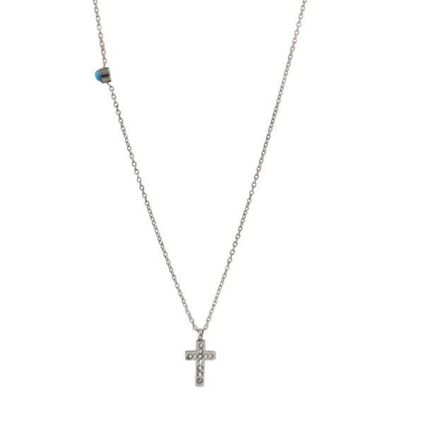 ς Σταυρός Απο Ανοξείδωτο Ατσάλι Και Πέτρες Ζιργκόν – Ασημί