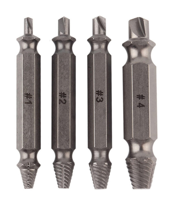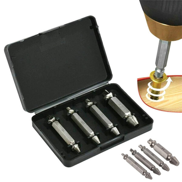 Εξαιρετικό σετ, που αποτελείται από 4 ατσάλινους εξολκείς βιδών σε διαφορετικά μεγέθη. Εφαρμόζουν σε τρυπάνι και σας επιτρέπουν να αφαιρέσετε εύκολα κατεστραμμένες ή κολλημένες βίδες των πιο δημοφιλών μεγεθών.