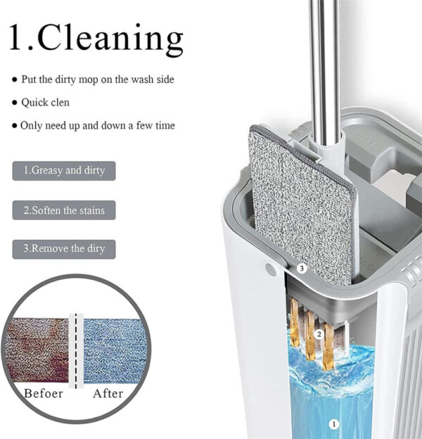 Ο κουβάς προσφέρει τη δυνατότητα για εύκολο και γρήγορο καθαρισμό, καθώς είναι εξοπλισμένος με διπλό θάλαμο, που σας επιτρέπει να πλένετε και να στεγνώνετε την παρκετέζα.