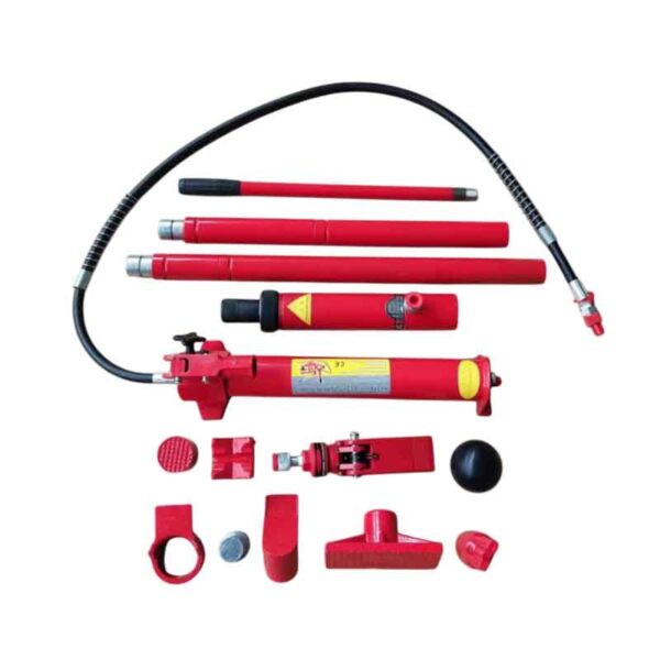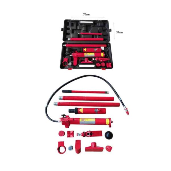 Πλήρες σετ βαρέως τύπου υδραυλικού εξοπλισμού για ανύψωση, τράβηγμα, πίεση, λύγισμα, ισιώσιμο και διάνοιξη. Με ικανότητα ανύψωσης έως 10 τόνους, είναι ιδανικό για επαγγελματικά συνεργεία, επισκευές πλαισίων οχημάτων και βαριές κατασκευές.