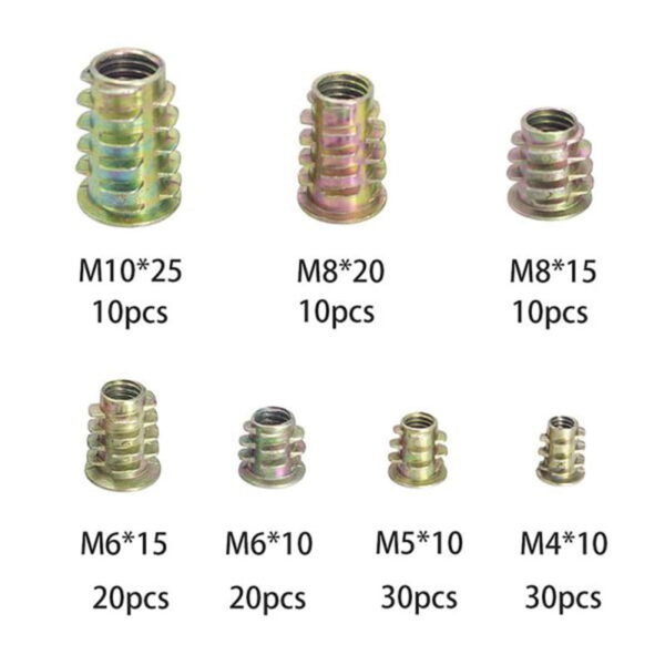 Σετ 130 τεμαχίων μεταλλικά ούπα με σπείρωμα για ξύλο M4 – M10.