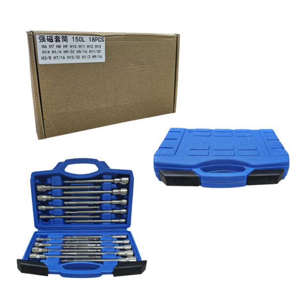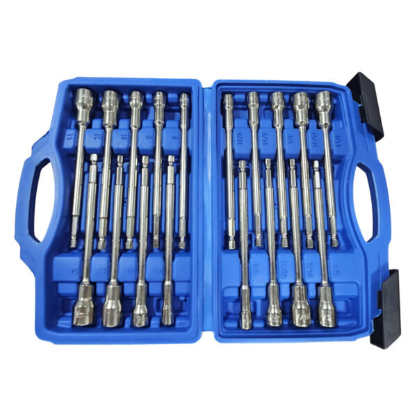 Πρακτικό σετ με 18 τεμάχια μαγνητικές μύτες καρυδάκια μήκους 150mm, κατάλληλες για κατσαβίδια, δραπανοκατσάβιδα και εργαλεία με εξάγωνη υποδοχή. Κατασκευασμένες από ανθεκτικό ατσάλι, με μαγνητική κεφαλή για σταθερό κράτημα βιδών και παξιμαδιών κατά τη χρήση. Το σετ παρέχεται σε ανθεκτική πλαστική κασετίνα αποθήκευσης με εσωτερική σήμανση για εύκολη οργάνωση και μεταφορά.