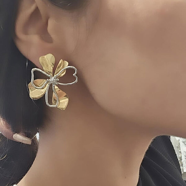 Σκουλαρίκια Ατσάλινα Καρφωτά Δίχρωμα Σε Σχήμα Λουλουδιού