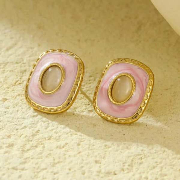 Σκουλαρίκια Ατσάλινα Καρφωτά Με Πέτρα – Ροζ χρυσό