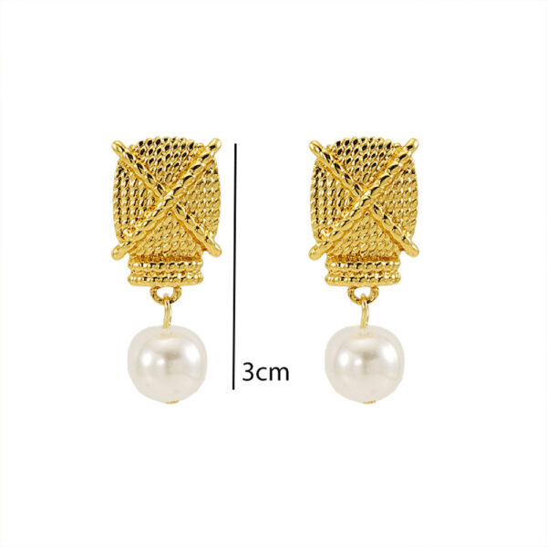 Σκουλαρίκια Ατσάλι Πλεκτή Όψη με Κρεμαστή Πέρλα – Χρυσό