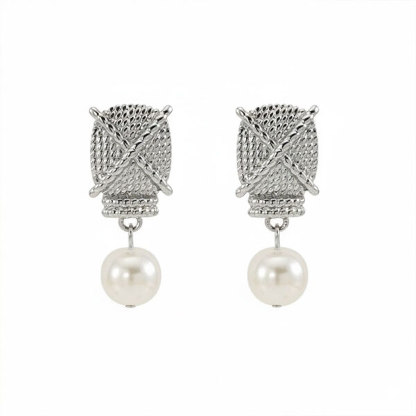 Κομψά σκουλαρίκια από ανοξείδωτο ατσάλι με πλεκτή, ανάγλυφη όψη στο επάνω μέρος και κρεμαστή λευκή πέρλα που χαρίζει λεπτή κίνηση και διακριτική λάμψη. Ο μοναδικός υφαντός σχεδιασμός τους προσφέρει ιδιαίτερο χαρακτήρα, συνδυάζοντας vintage αισθητική με σύγχρονο ύφος. Ελαφριά και άνετα στο αυτί, αποτελούν ιδανική επιλογή για καθημερινές αλλά και πιο επίσημες εμφανίσεις, προσθέτοντας elegant και θηλυκή πινελιά σε κάθε look.