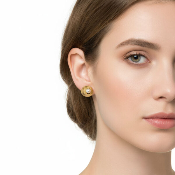 Σκουλαρίκια Ατσάλι Σπειροειδές Σχέδιο με Πέρλα – Χρυσό