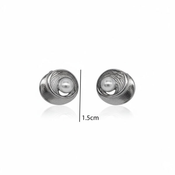 Εντυπωσιακά σκουλαρίκια από ανοξείδωτο ατσάλι με μοναδικό σχέδιο που σχηματίζει έναν κομψό στροβιλισμό γύρω από μια λευκή πέρλα. Η ανάγλυφη υφή προσθέτει βάθος και καλλιτεχνικό χαρακτήρα, ενώ η διακριτική λάμψη της πέρλας χαρίζει διαχρονική φινέτσα. Ελαφριά και εύκολα στο φόρεμα, αποτελούν ιδανική επιλογή για καθημερινές και βραδινές εμφανίσεις, προσφέροντας μια κομψή και σοφιστικέ πινελιά σε κάθε look.