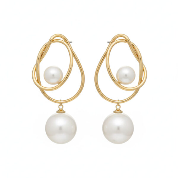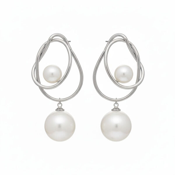 Εντυπωσιακά σκουλαρίκια από ανοξείδωτο ατσάλι με στριφτό, οβάλ σχήμα που παραπέμπει σε φινετσάτη, καμπυλωτή κίνηση. Στο εσωτερικό τους αγκαλιάζουν μία μικρή λευκή πέρλα, ενώ στο τελείωμα κρέμεται μία μεγαλύτερη, προσφέροντας ισορροπία και εκλεπτυσμό. Η καμπυλωτή, «δεμένη» όψη του μετάλλου δημιουργεί ένα δυναμικό αλλά ταυτόχρονα elegant αποτέλεσμα, ιδανικό για ιδιαίτερες εμφανίσεις. Ελαφριά και άνετα, προσθέτουν μια σύγχρονη, statement πινελιά σε κάθε look.