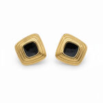 Σκουλαρίκια Ατσάλι Τετράγωνα Μαύρο Κέντρο – Χρυσό