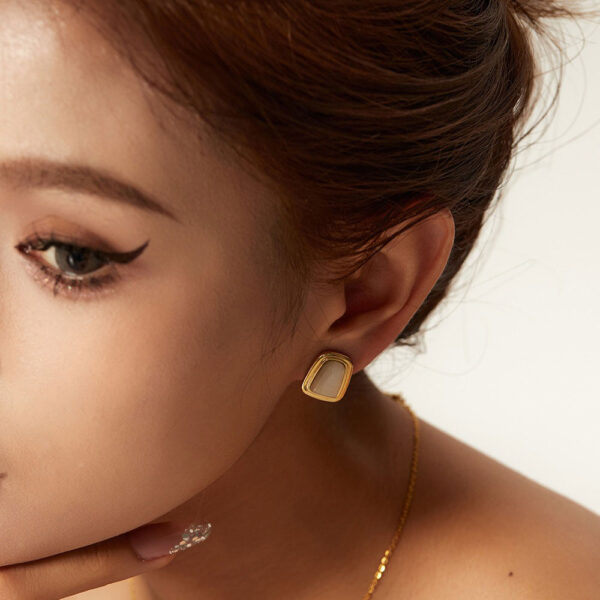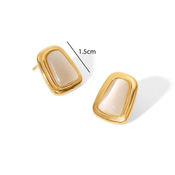 Κομψά και διαχρονικά σκουλαρίκια από ανοξείδωτο ατσάλι σε χρυσό χρώμα με μπεζ πέτρα υψηλής λάμψης που προσφέρουν ένα εκλεπτυσμένο minimal touch στην εμφάνιση ιδανικά για καθημερινές αλλά και πιο elegant εμφανίσεις εξαιρετικά ελαφριά και ανθεκτικά στην χρήση χωρίς να μαυρίζουν ή να προκαλούν αλλεργίες