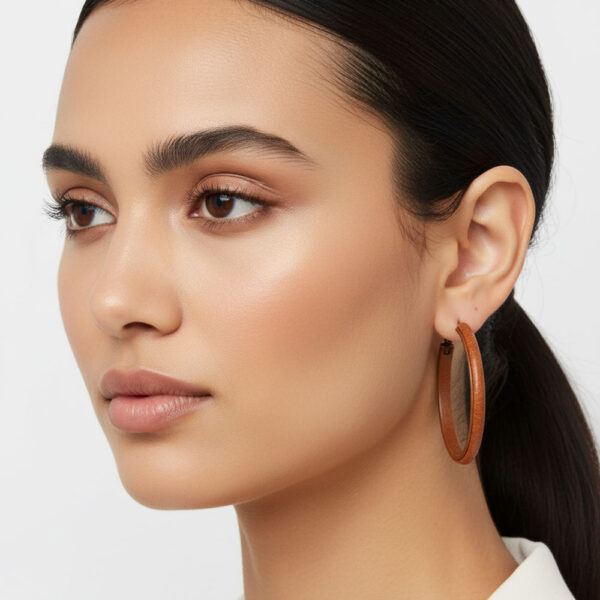 Κομψοί και μοντέρνοι κρίκοι σε καφέ απόχρωση, ντυμένοι με δερματίνη που προσφέρει μια ζεστή, φυσική υφή. Ο στρογγυλός σχεδιασμός τους χαρίζει κίνηση και χαρακτήρα, ενώ το ελαφρύ υλικό τους τους καθιστά άνετους για πολύωρη χρήση. Ένα στιλάτο αξεσουάρ που ταιριάζει τέλεια με casual αλλά και πιο elegant εμφανίσεις, προσθέτοντας μια minimal boho πινελιά σε κάθε look.
