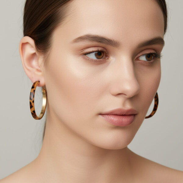 Στυλάτα σκουλαρίκια κρίκοι σε εντυπωσιακή καφέ leopard απόχρωση, με δερμάτινη όψη που δίνει μια elegant αλλά και wild πινελιά σε κάθε εμφάνιση. Ελαφριά, άνετα και εύκολα στον συνδυασμό, αποτελούν ιδανική επιλογή για καθημερινές και βραδινές εμφανίσεις. Το ιδιαίτερο leopard pattern προσθέτει δυναμισμό και χαρακτήρα, κάνοντάς τα statement κομμάτι στη συλλογή σας.