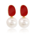 Σκουλαρίκια με Μαργαριτάρι & Επίχρυση Εμαγιέ Λεπτομέρεια – Κόκκινο