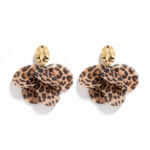Σκουλαρίκια Υφασμάτινα Λεοπάρ σε Layered Σχέδιο με Ατσάλινη Βελόνα