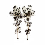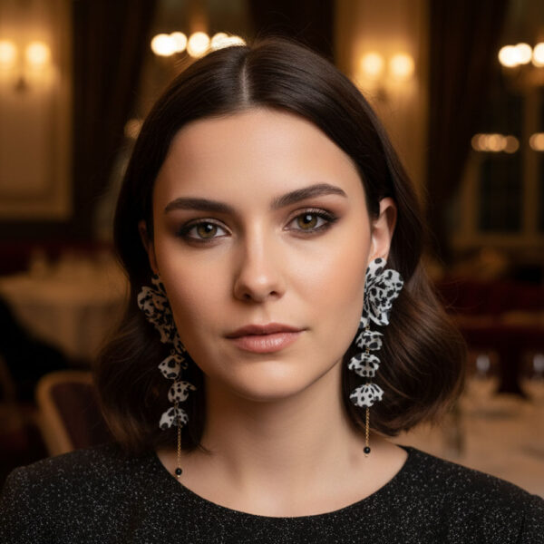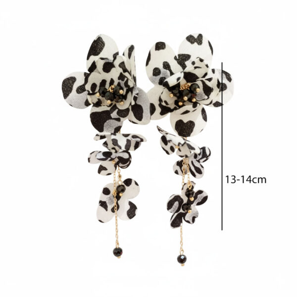 Εντυπωσιακά υφασμάτινα σκουλαρίκια σε λεοπαρ μοτίβο, διακοσμημένα με layered πέταλα και λεπτές κρεμαστές αλυσίδες με μαύρες χάντρες, που χαρίζουν κίνηση και ιδιαίτερο χαρακτήρα. Η ανάλαφρη κατασκευή τους τα κάνει άνετα για πολύωρη χρήση, ενώ η ατσάλινη βελόνα προσφέρει ασφάλεια και αντοχή. Ιδανικά για ιδιαίτερες εμφανίσεις, δίνουν statement διάθεση και απογειώνουν κάθε outfit με chic, fashion-forward αισθητική.