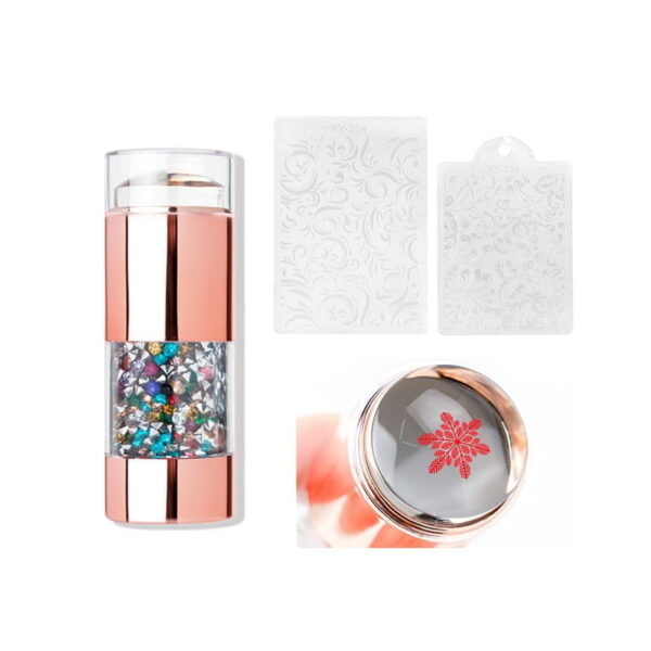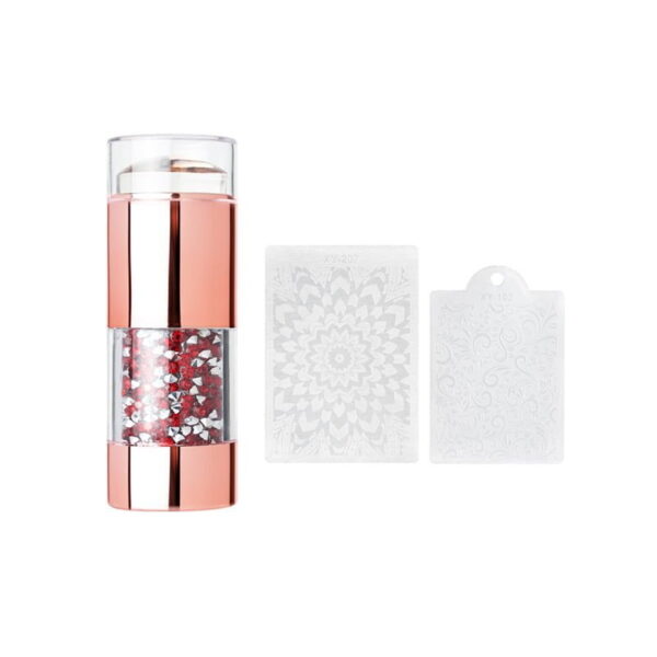 Η Στάμπα σιλικόνης rose gold ξεχωρίζει με τα υπέροχα διακοσμητικά ενσωματωμένα στρας και με τις 2 διαφορετικές στάμπες – ξύστρες της.