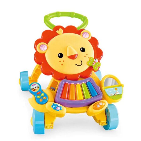 Στράτα / περπατούρα “Mουσικό Λιοντάρι” για το μωρό σας από 6 μηνών + για τα πρώτα του βήματα, απόλυτα σταθερή. Διασκεδαστικές μελωδίες που ενθαρρύνουν το μωρό να περπατήσει. Παίζει απαλή και αργή μουσική για να δημιουργήσει μια χαρούμενη ατμόσφαιρα για την ανάπτυξη του μωρού σας. Οι πίσω τροχοί είναι εφοδιασμένοι με αντιολισθητική σιλικόνη.