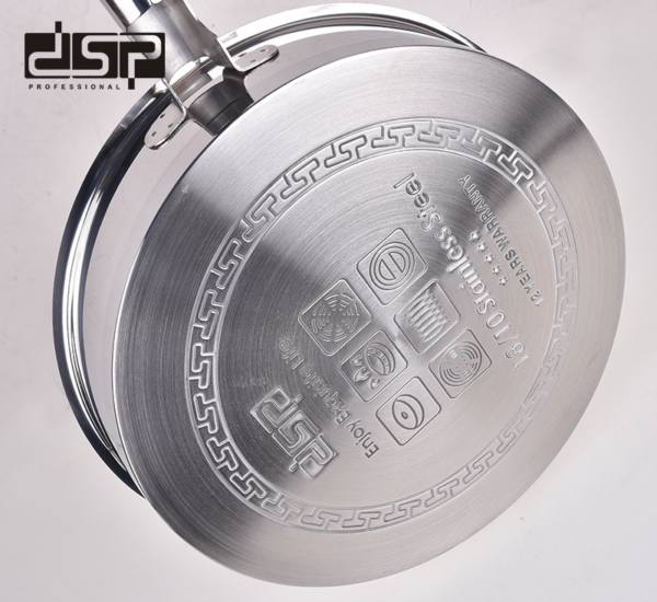 Τηγάνι υψηλής ποιότητας κατασκευής από την DSP, κατασκευασμένη από ανοξείδωτο ατσάλι, με γυάλινο καπάκι.