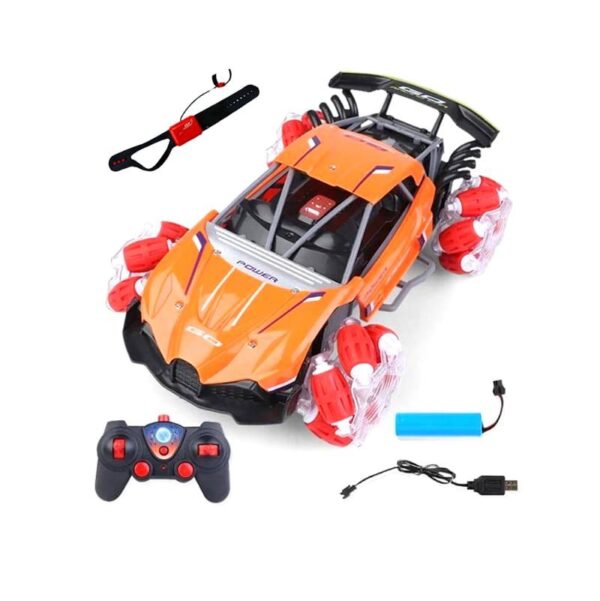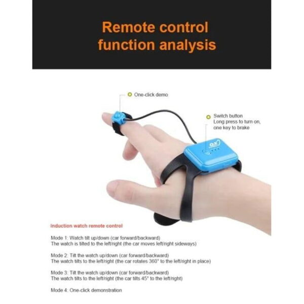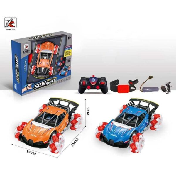 Σε αντίθεση με άλλα αυτοκίνητα, αυτό το αυτοκίνητο δεν είναι μόνο εξοπλισμένο με τηλεχειριστήριο 2,4 Ghz αλλά και τηλεχειριστήριο ρολογιού. Το τηλεχειριστήριο 2,4 Ghz είναι εύκολο στο χειρισμό και το τηλεχειριστήριο του ρολογιού μπορεί να ελέγξει το τηλεχειριστήριο του αυτοκινήτου μέσω ανίχνευσης χειρονομιών, κάτι που είναι πραγματικά διασκεδαστικό!!!