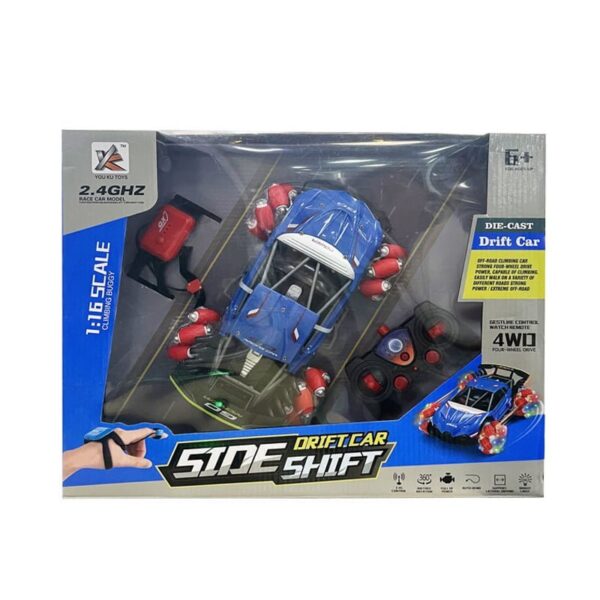 Επαγγελματικός τροχός drift. Γυρίστε και κυλήστε προς τα εμπρός, προς τα πίσω, αριστερά, δεξιά και περιστροφή 360°. Χειριστείτε εύκολα τις πλευρικές αλλαγές μετατόπιση ενός τροχού, περιστροφή 360 drift και άλλες δροσερές ενέργειες drifting. Η ισχύς των ισχυρών κινητήρων μπορεί να ανέβει κατά 45°. Ισχυρός κινητήρας με τελική ταχύτητα 15 χλμ./ώρα. Η απόσταση του τηλεχειριστηρίου φτάνει τα 50 μέτρα, ανεξάρτητο σταθερό σήμα 2,4 Ghz με συχνότητα παρακολούθησης αισθητήρα χειρονομίας διαρκείας και λειτουργία μη εμπλοκής.
