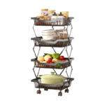 Μεταλλική ραφιέρα τετραώροφη, με ρόδες για εύκολη μετακίνηση. Πτυσσόμενη για να μην καταλαμβάνει χώρο όταν δεν χρησιμοποιείται, με εργονομικό σχεδιασμό για εύκολη καθημερινή χρήση.