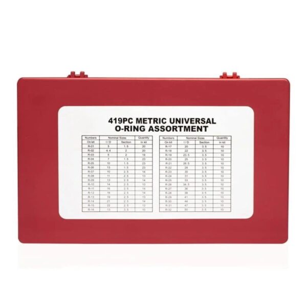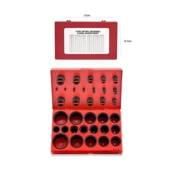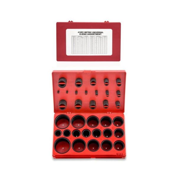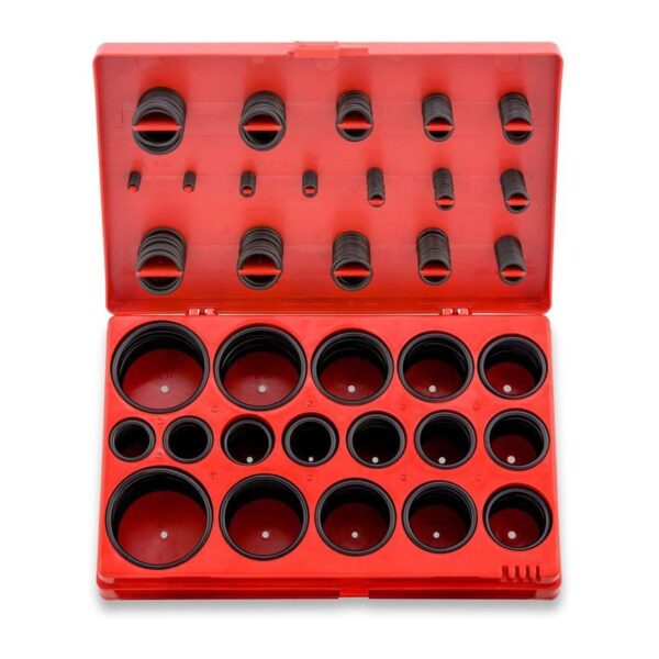 Πρακτικό σετ με 419 τσιμουχάκια O-Ring σε διάφορα μεγέθη, κατάλληλα για επισκευές και συντηρήσεις σε μηχανές, υδραυλικά, αερολογικά και άλλα συστήματα.