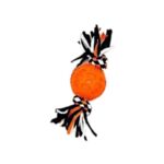 Παιχνίδι σκύλου σχοινί με μασητική μπάλα, από ελαστικό, ανθεκτικό, μη τοξικό πολυεστέρα, ιδανικό για παιχνίδια τραβήγματος/αντίστασης ενώ παράλληλα βοηθά στην υγιεινή στόματος του σκύλου σας καθώς καθαρίζει ήπια και απασχολεί τα δόντια του. Συνολικό μήκος: 20cm.