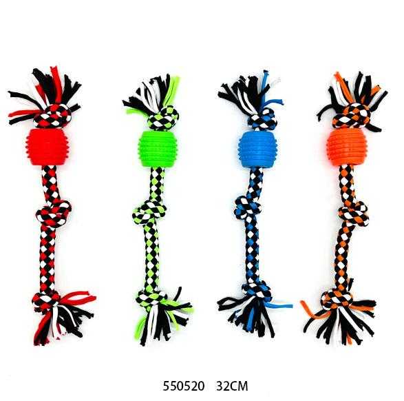 Υφασμάτινο παιχνίδι σκύλου σχοινί με μπάλα μασητική – 32cm – 12pcs – 550520