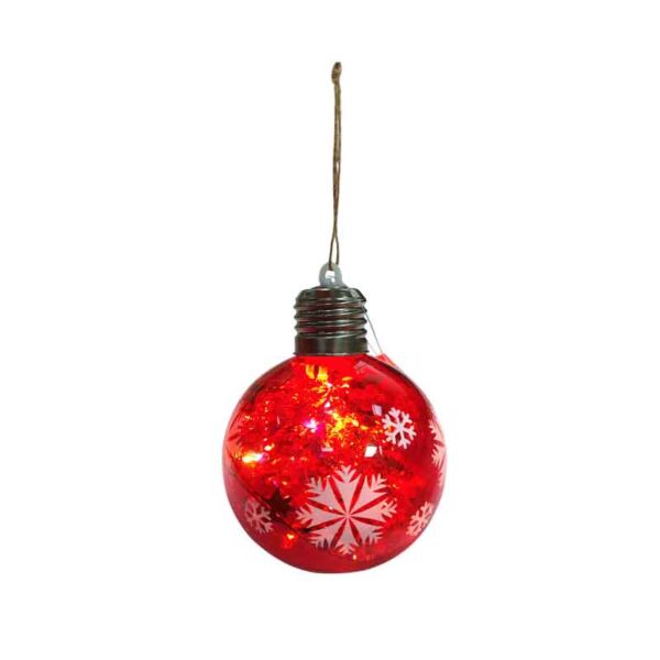 Χριστουγεννιάτικες φωτιζόμενες μπάλες με σχέδιο νιφάδες χιονιού, ιδανικές για να στολίσουν το δέντρο ή οποιονδήποτε εσωτερικό χώρο. Διατίθενται σε διάφορα χρώματα και εκπέμπουν ζεστό φως, δημιουργώντας μαγική γιορτινή ατμόσφαιρα. Ύψος μπάλας 10cm.