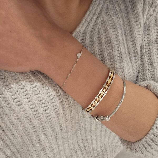 Γυναικείο βραχιόλι χειροπέδα, φτιαγμένο από ανοξείδωτο ατσάλι άριστης ποιότητας. Μπορεί να συνδυαστεί εύκολα με όλα σου τα κοσμήματα και είναι ιδανική επιλογή σε οποιαδήποτε έξοδό σου.