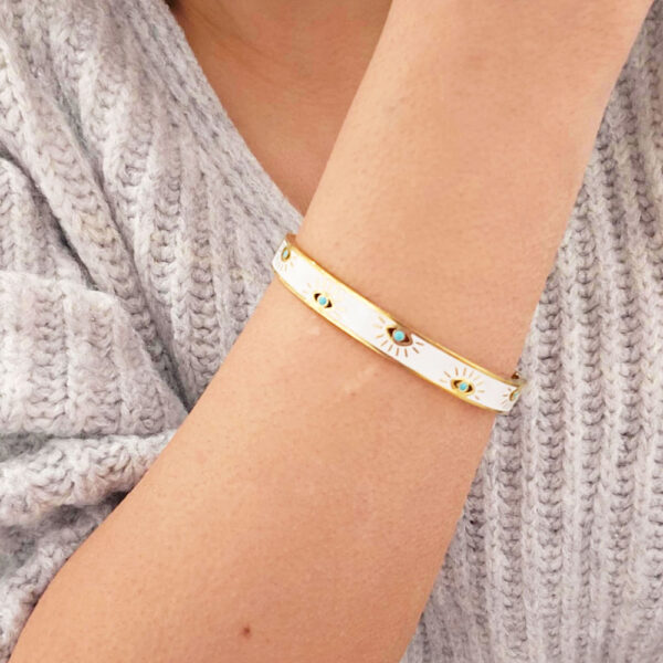 Χειροπέδα Απο Ανοξείδωτο Ατσάλι Και Σμάλτο Με Ματάκια