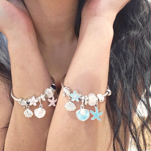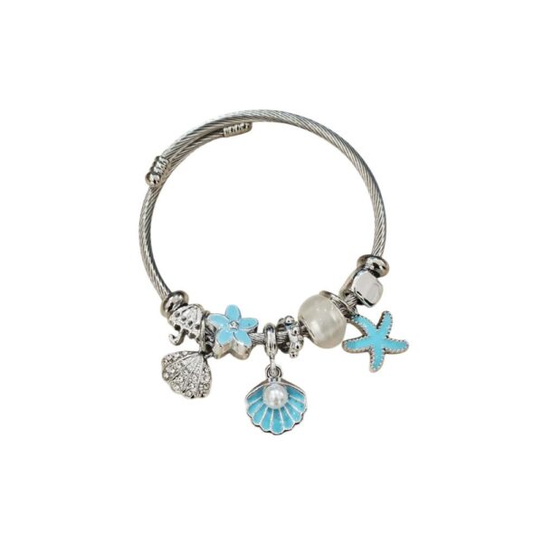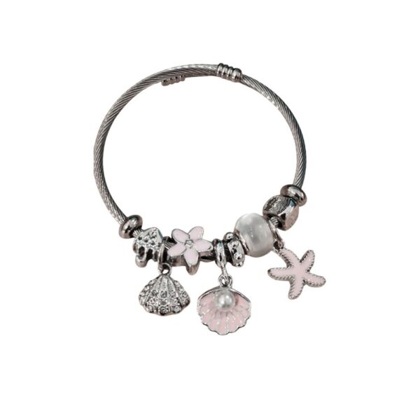 Χειροπέδα Ατσάλινη Με Θαλασσινά Στοιχεία – Ασημί Ροζ