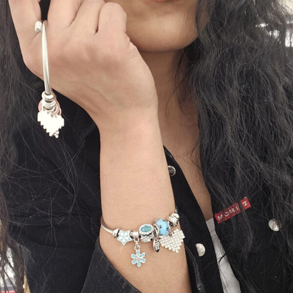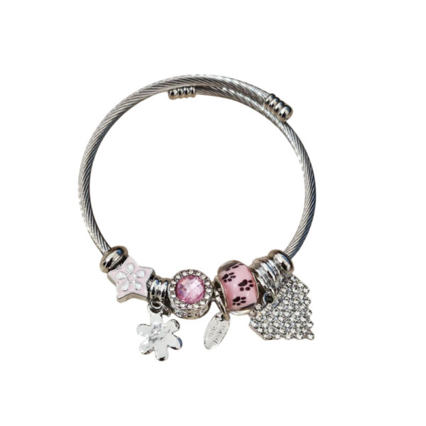 Χειροπέδα Ατσάλινη Με Χάνδρες Και Καρδιά – Ασημί Μοβ