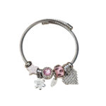 Χειροπέδα Ατσάλινη Με Χάνδρες Και Καρδιά – Ασημί Ροζ