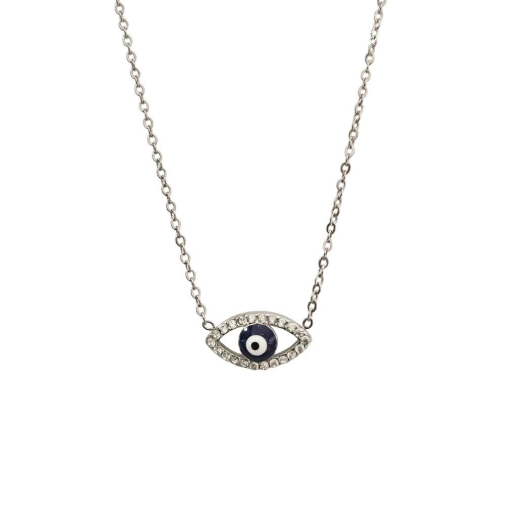 Χειροπέδα Λεπτή Απο Ανοξείδωτο Ατσάλι Με Πέτρες Ζιργκόν – Ασημί