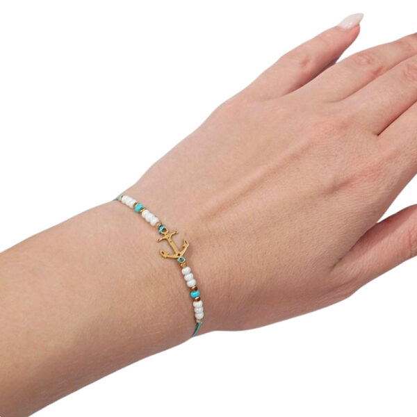 Χειροποίητο βραχιολάκι με λευκές και τιρκουάζ χάντρεςΜε μεταλλικά στοιχεία σε σχέδια άγκυρα, δελφίνι και ψαράκιΚαλοκαιρινό, ναυτικό στυλΡυθμιζόμενο μέγεθος – ιδανικό για όλες τις ηλικίες