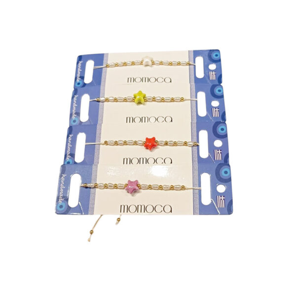 Χειροποίητο βραχιολάκι με χρυσές χάντρες και πολύχρωμο αστεράκιΣε χρώματα όπως λευκό, κίτρινο, κόκκινο, ροζ και μωβΙδανικό για παιδιά, εφήβους ή girly στυλΡυθμιζόμενο μέγεθος – ταιριάζει σε κάθε καρπό