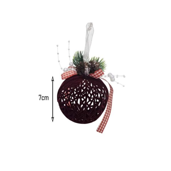 Χριστουγεννιάτικη Μπάλα Διακοσμητική Βελούδινη με Κουκουνάρι και Κορδέλα 7cm – Velvet Christmas Ornament Ball with Pinecone and Ribbon