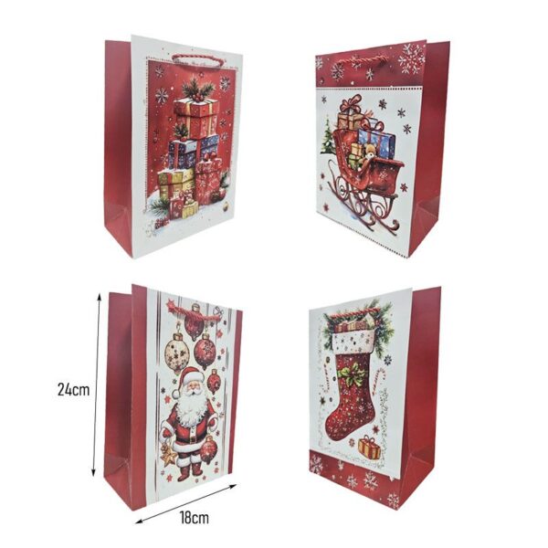 Χριστουγεννιάτικη Σακούλα Δώρου με Σχέδια 24x18cm 12τμχ – Christmas Gift Bag with Designs 12pcs
