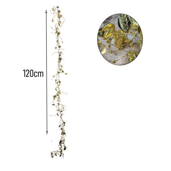 Χριστουγεννιάτικη Φωτιζόμενη Χρυσή Γιρλάντα με Φύλλα και Πέρλες 120cm – Christmas Lighted Garland with Leaves and Pearls