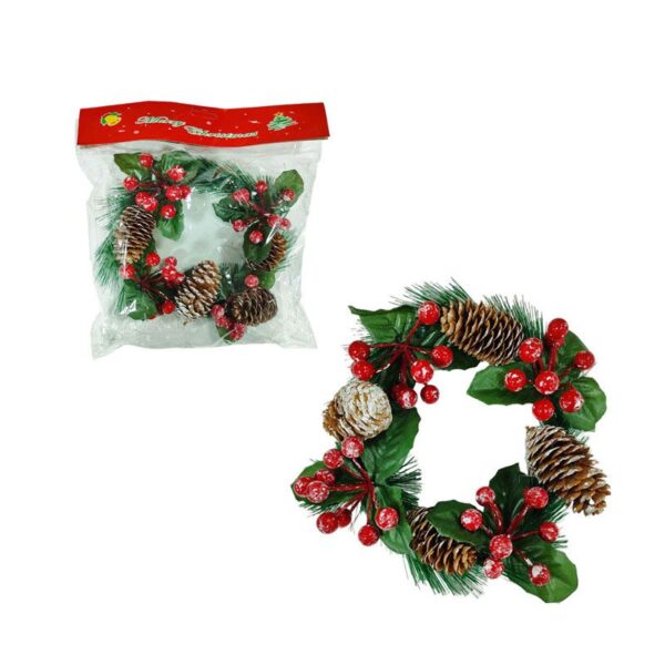 Χριστουγεννιάτικο Διακοσμητικό Στεφάνι Berries Κουκουνάρια 19cm – Christmas Decorative Wreath Berries Cocoons