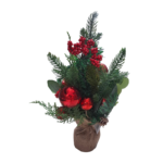 Χριστουγεννιάτικο διακοσμητικό δεντράκι με επιτραπέζια βάση και εντυπωσιακή σύνθεση με στολίδια και υπέροχες ρεαλιστικές λεπτομέρειες. Ύψος: 40cm.