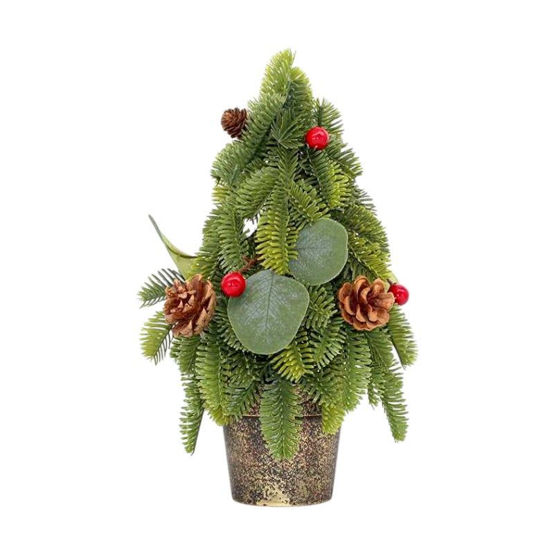 Χριστουγεννιάτικο διακοσμητικό δεντράκι με επιτραπέζια βάση και εντυπωσιακό σχεδιασμό με υπέροχες ρεαλιστικές λεπτομέρειες, ιδανικό για διακόσμηση τραπεζαρίας, γραφείου, ραφιέρας, σύνθετου κα. Διαστάσεις (Π-Υ): 18*33 cm.