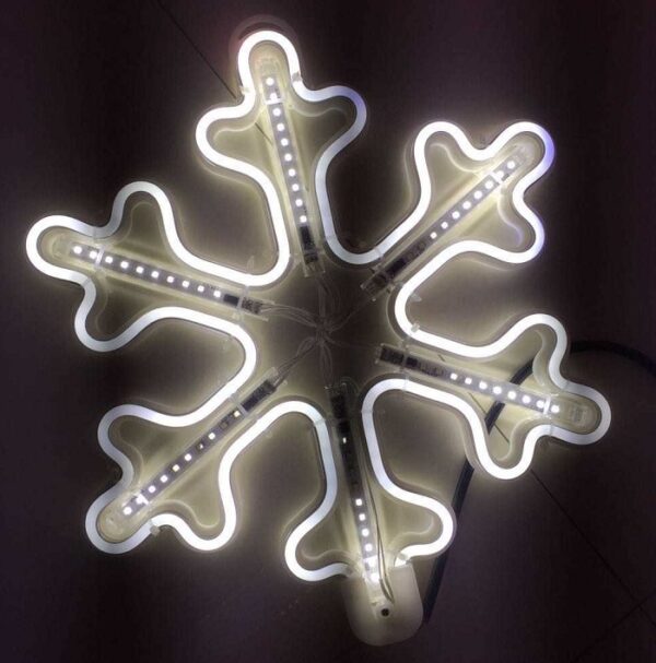 Χριστουγεννιάτικο φωτεινό διακοσμητικό σε σχέδιο Χιονονιφάδα με φωτοσωλήνα LED Neon και ενδιάμεσα φωτάκια με γραμμική κίνηση που δημιουργούν ένα εντυπωσιακό εφέ φωτισμού.