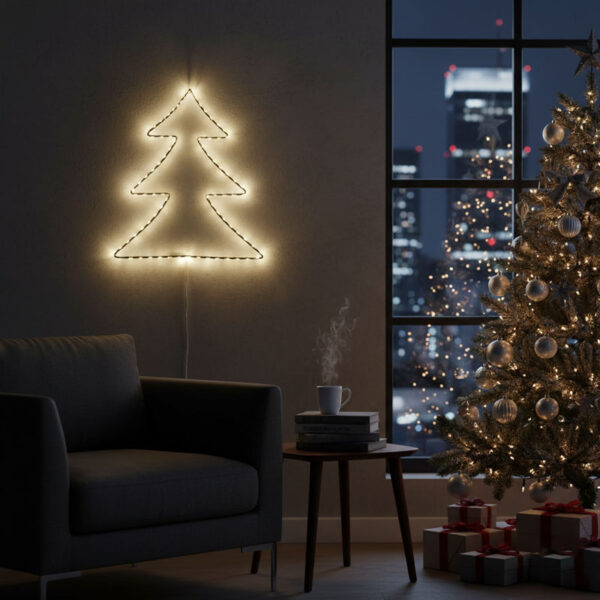 Φωτίστε τις γιορτές σας με αυτό το κομψό φωτιζόμενο Χριστουγεννιάτικο δέντρο LED. Μια ιδανική προσθήκη για να δημιουργήσετε μια ζεστή και εορταστική ατμόσφαιρα σε κάθε χώρο, είτε τοποθετηθεί στον τοίχο, σε βιτρίνα ή σε εξωτερικό χώρο. Κατασκευασμένο με ανθεκτικά υλικά, προσφέρει ένα απαλό και ευχάριστο φως που αναδεικνύει τη μαγεία των Χριστουγέννων. Η τεχνολογία LED εξασφαλίζει χαμηλή κατανάλωση ενέργειας και μεγάλη διάρκεια ζωής, καθιστώντας το μια οικονομική και διαχρονική επιλογή. Εύκολο στην τοποθέτηση, είναι έτοιμο να μεταμορφώσει τον χώρο σας.