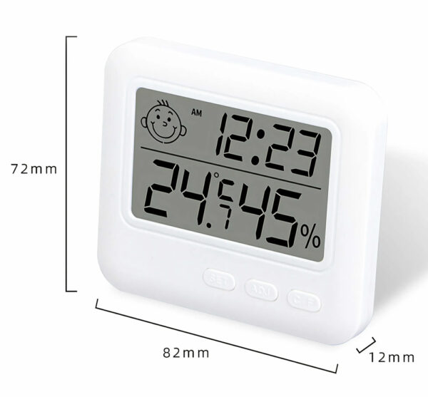 Ψηφιακό θερμόμετρο & υγρασιόμετρο με ευανάγνωστη οθόνη για την ακριβή ένδειξη της θερμοκρασίας και ποσοστού της υγρασίας στον χώρο σας. Μπορεί να τοποθετηθεί είτε επιτραπέζια είτε επιτοίχια. Η τροφοδοσία του γίνεται με 1x CR2032 μπαταρία (συμπεριλαμβάνεται)