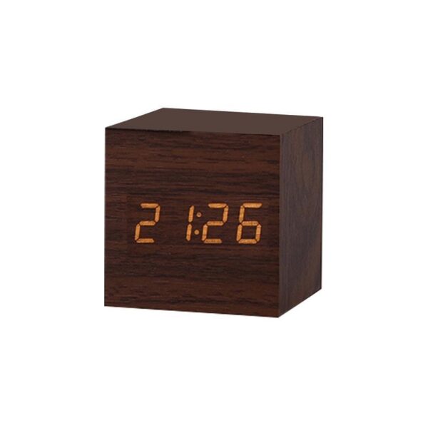 Ψηφιακό ρολόι–Ξυπνητήρι LED, σε ιδιαίτερο σχεδιασμό με εφέ ξύλου. Πρακτικό μέγεθος που μπορεί να τοποθετηθεί παντού και να προσδώσει σύγχρονη νότα στο χώρο σας.
